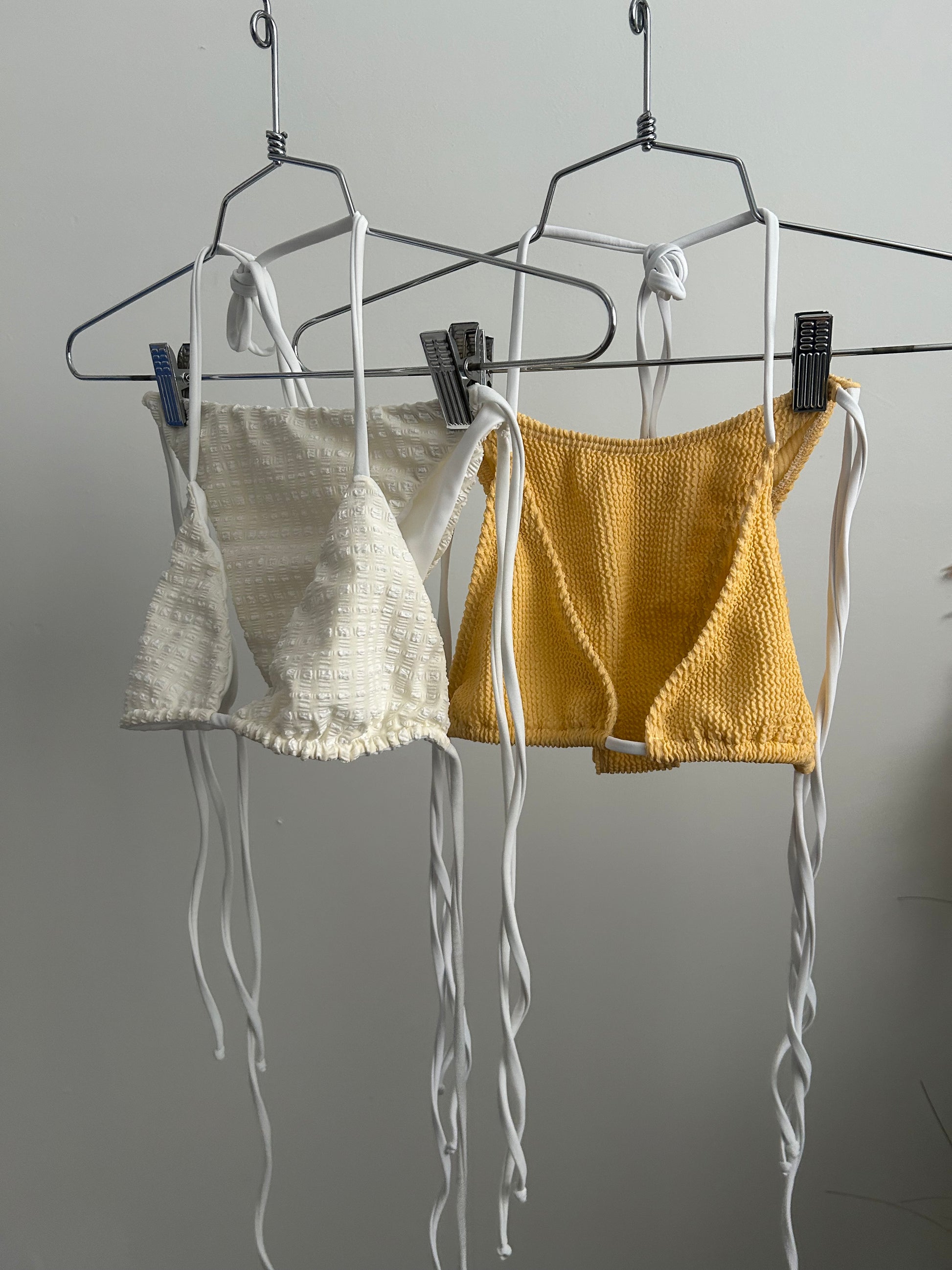 Crinkle yellow one size string bikini set